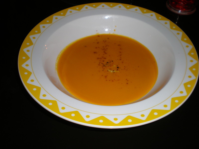 We started off we a carrot soup that made my mouth water.