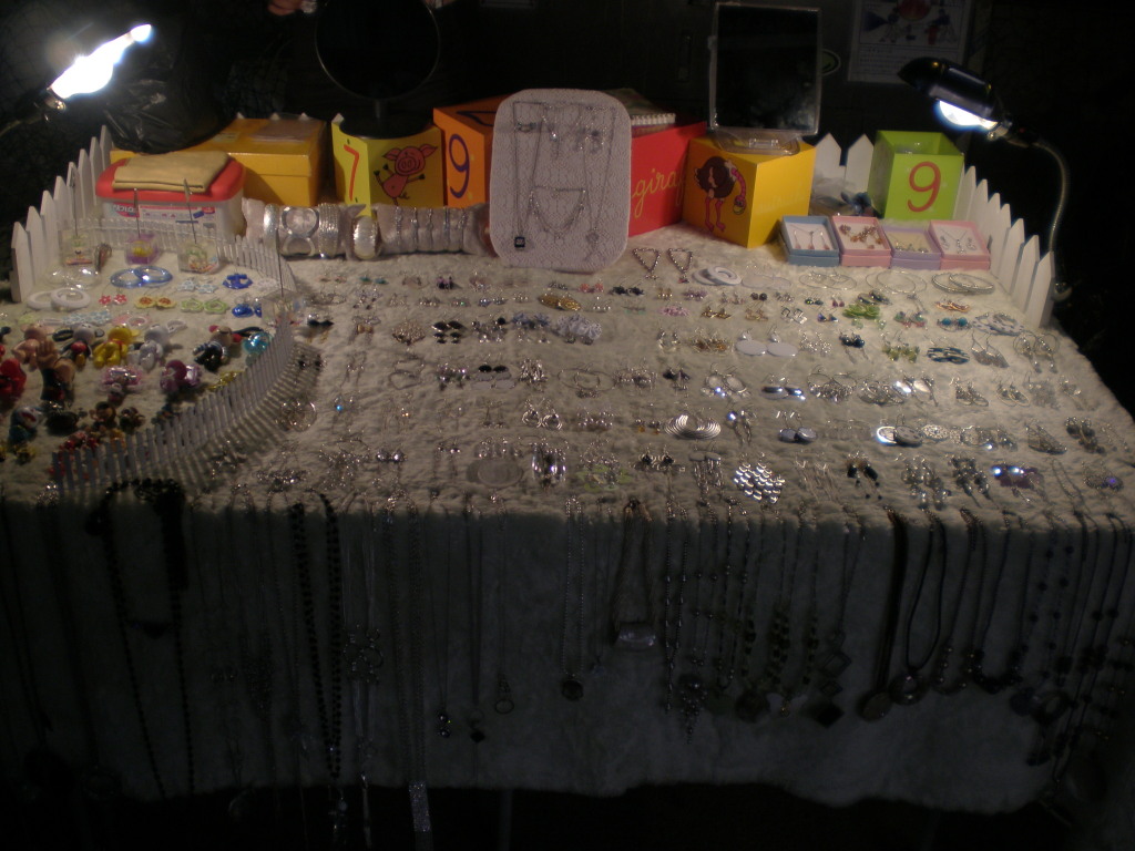 The students make a lot of what they sell. The displays of jewelry and ornate burners and holders goes on and on.