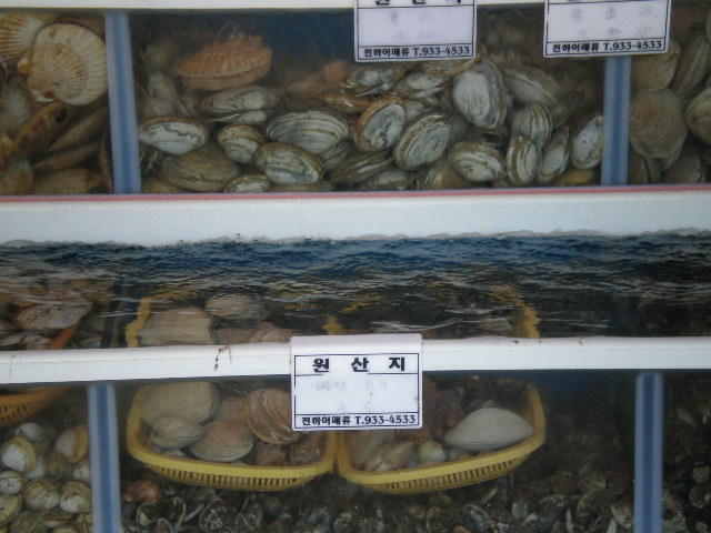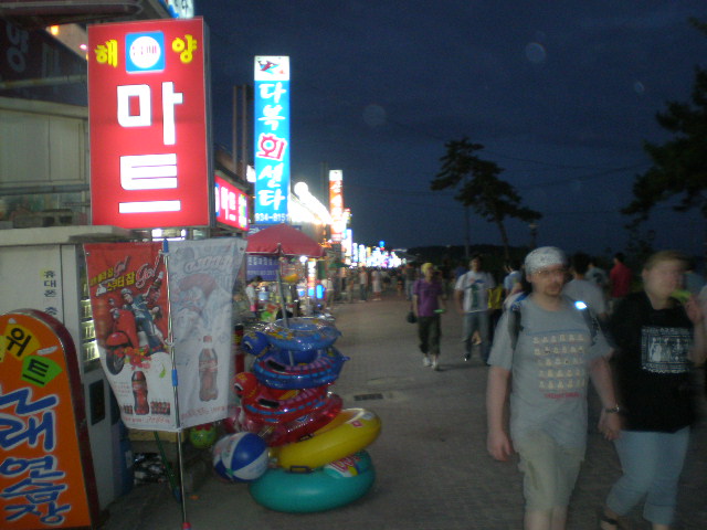 Boryeong Beach has a nice promenade to stroll during the night hours. Seafood restaurants and shops line the streets and its all about shellfish, well mostly anyway.