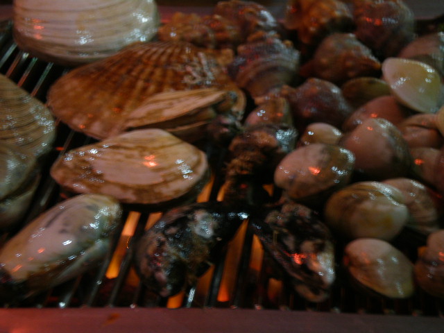 I haven’t been really a shellfish lover, but it was a fun dining experience. You grill the shellfish and wait for them to pop open before scooping out the meat.