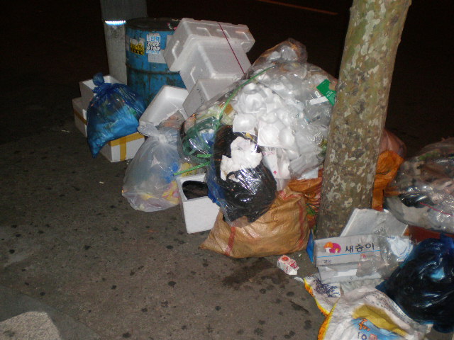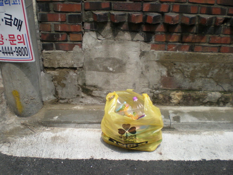 In Korea it seems as if finding a sober salary man is easier than finding a trash can to drop the diet coke can you’ve been holding for the last twenty blocks. Finding a trash can is tough. There seem to be few on the streets and even the subways don’t have many places to drop your garbage.